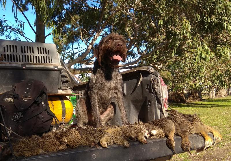 Posteriormente tuve un macho, el cual por problemas de parvo y un atropello del tren, psicologicamente no andaba muy bien, pero cazando era una maquina.