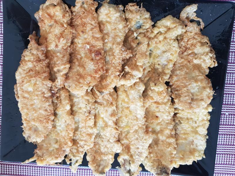 Hoy he preparado unos bacaladitos con harina huevo y a la sartén, para mi es ena comida barata y rica, rica.