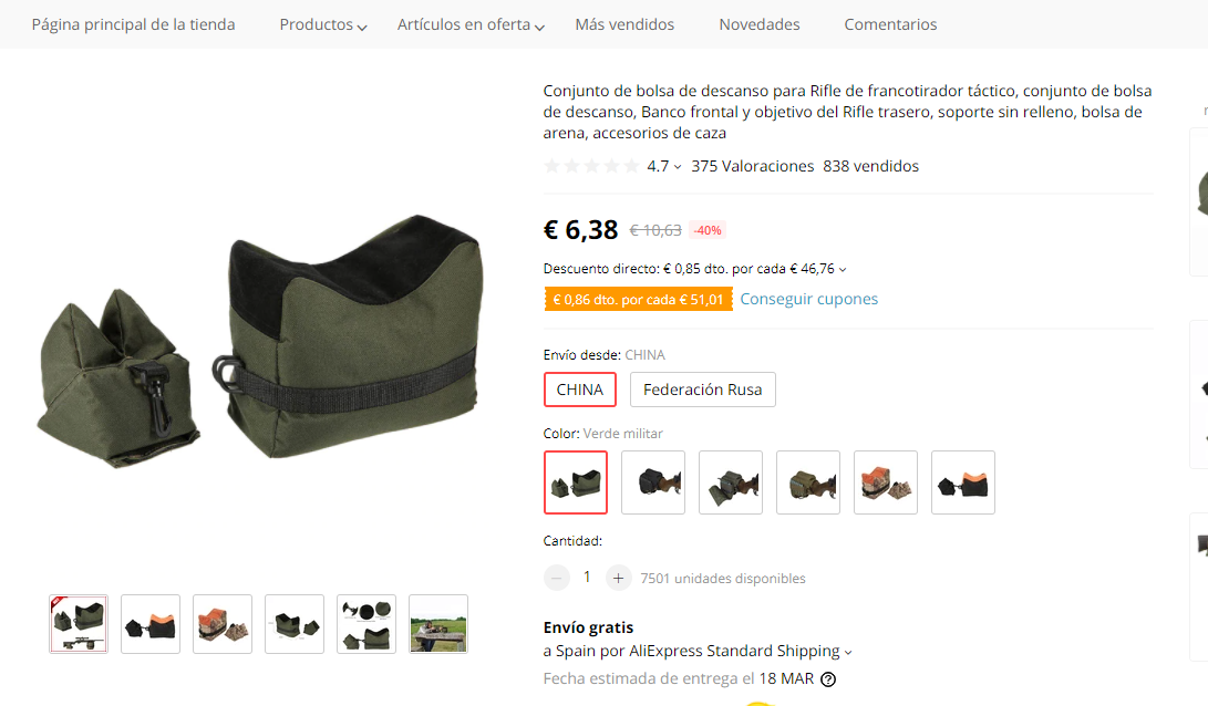 Los sacos de tiro, los compras a Aliexpress por unas calderillas: