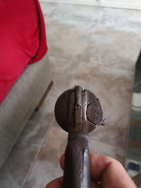 Parece que se le corto la cola del martillo, quiza para hacerlo mas portable, o para evitar inopòrtunos enganches al "sacarlo", y eso, si es asi, podria orientar sobre el uso previsto.