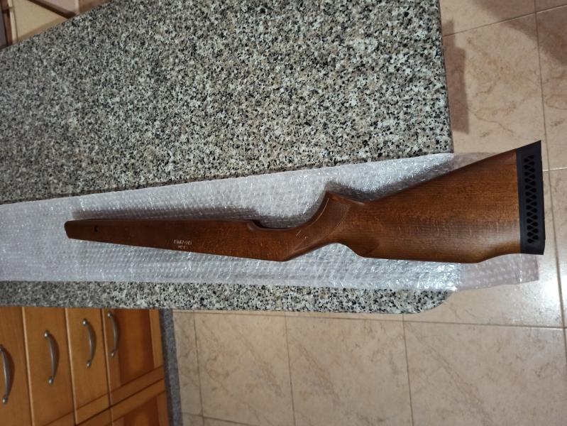 Hola, vendo culata de diana 350 Magnum t05 nueva sin estrenar, tal cual salió de fábrica. La diferencia con la culata t06 es que los picados tienen un diamantado más redondeado por lo que no son tan ásperos como los de la culata t06 , el logo de 350 Magnum es un poco más grande y con las letras más perfiladas, el tono de la madera también varia un poco respecto a la culata t06( un tono más nogal)