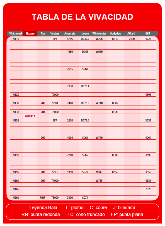 Esto es de las tablas de recarga de Maxam, parece que es muy similar.