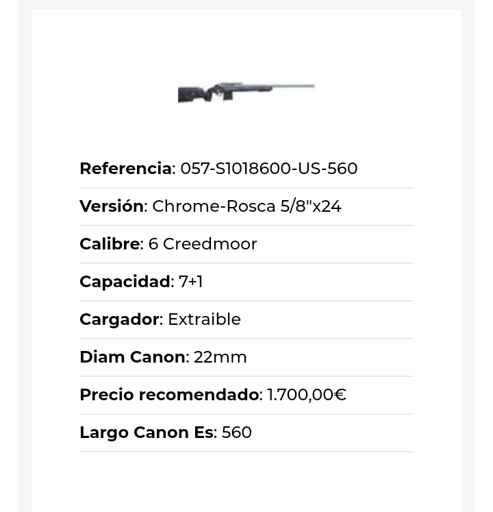 Justo por eso busco la versión US del sabatti es menos pesada que la versión normal que lleva un contorno de cañón de 28 y 70 cm de largo