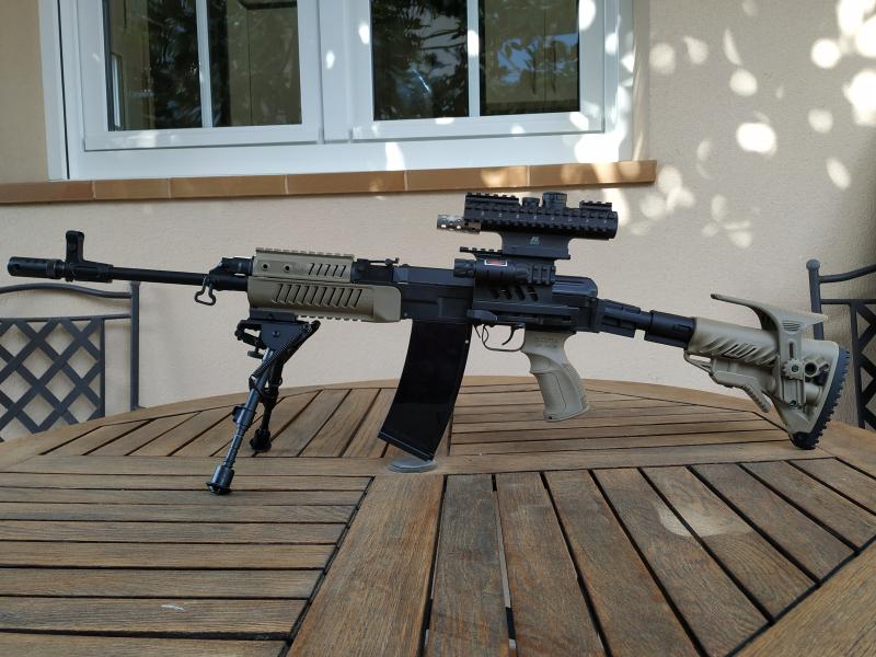 Rifle semi VZ58 cal. 222 Rem semiautomático, importado por Nidec, lleba montado una kit FAB Defence, apagallamas roscado en la punta, cargador original, visor NCstar con retícula iluminada, bípode plegable, montura y accesorios originales, dais del cal 222 Rem, 150 puntas y maletín de transporte.