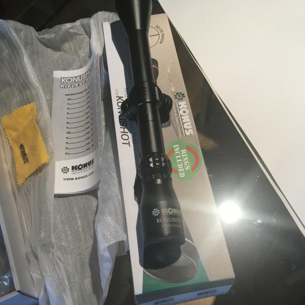 Vendo este visor Konus con anillas incluidas de 1”,solo usado una vez,está en Barcelona,precio 55€ envio incluido.