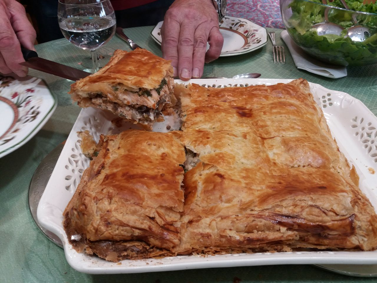 Pastel de salmón con setas.