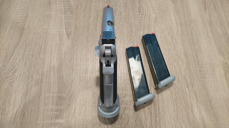 Se vende con dos cargadores, muelles de repuesto y maletín de transporte.