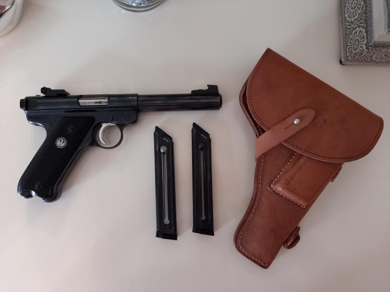 Vendo esta preciosa Ruger Mark II muy cuidada con dos cargadores, regalo maletin aluminio y plástico totalmente nuevo y una funda de cuero para una pistola rusa, que no es esta pero está nueva, me la regalaron y noble doy uso.