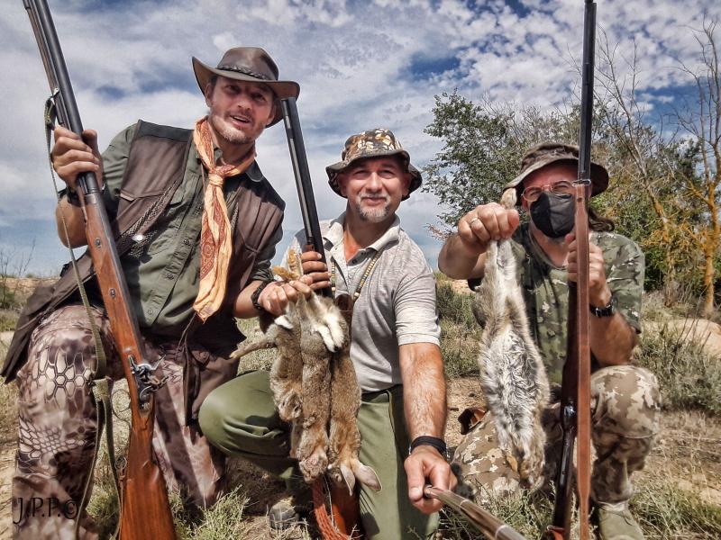 Para estas jornadas de caza, que serian de amanecer y atardecer, contábamos con algún hándicap, no se podía utilizar perro, los campos estaban todos cosechados, el calor iva a ser notable y mis compañeros iban con escopetas monotiro, una de pistón y otra de chispa, pero es lo que hay y a adaptarse, yo tras mucho pensármelo opté por llevar la paralela. Más o menos las cargas serian parecidas, yo personalmente opté por unos 60 grs. de 3FFF y 33gr. de perdigon del 5, todo ello motivado como así fue, por la necesidad de realizar tiros largos, de entre 20 y 50 m., la verdad que con todo pelado, los conejos ya salían corriendo a 200 m.