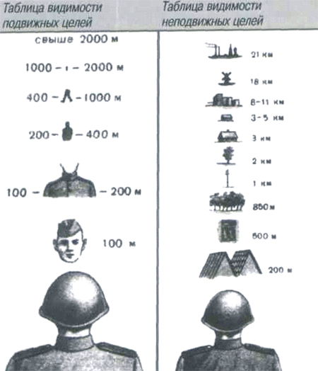 Lamina donde se representa la apariencia de los objetos. también existían tablas escritas que describían como se veían los objetos a distintas distancias. Este método era aprendido desde la instrucción básica del infante y se profundizaba en la instrucción de los tiradores especiales. la estima y determinación de la distancia es determinante en la efectividad del tiro.