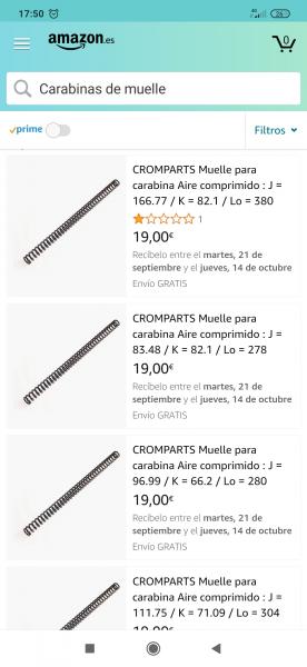 En la página de Sooting Chano vi que venden resorte con guía y top.Mañana llamare a ver si son 16 o FAC.Mil gracias y Un Saludo.