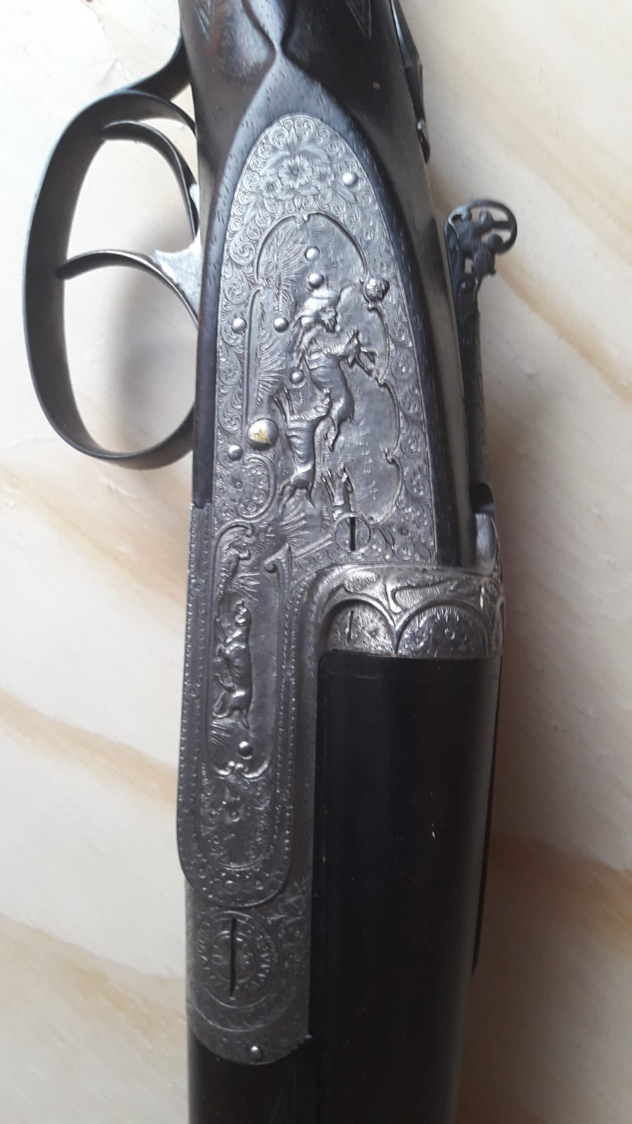 Escopeta del 16 expulsora marca  el faisán, de JM Urriola e hijo.modelo Principe de Asturias ( grabado 12
