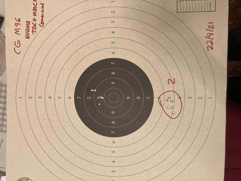 Despues de enfriar el cañón tiro el grupo 3 (en la zona negra, encima del 1. La agrupacion se me va a 6 cmts.