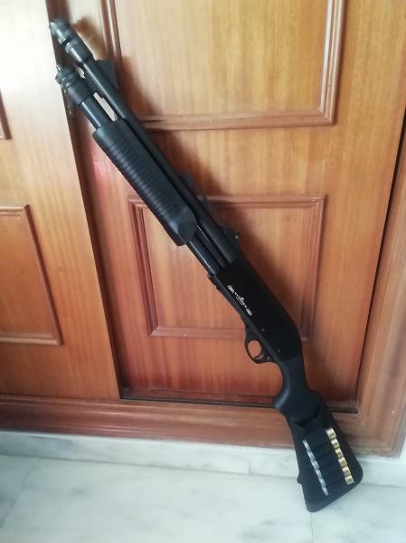 Yo tambien tengo esa escopeta el modelo mas corto, le quité la culata plegable y la dejé solo con el pistolete como uno del foro que hizo fotos de ella, lo que no se si es legal con la ultima modificacion del reglamento de armas.