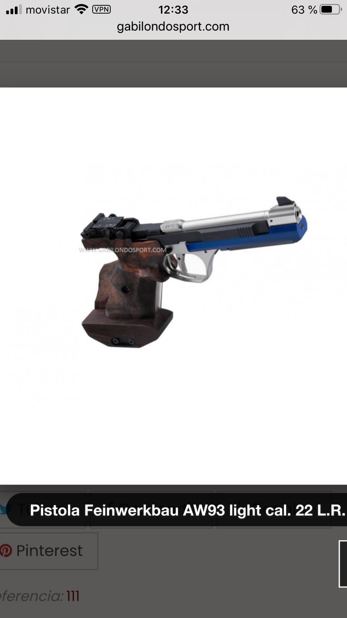 Pistola de precisión Feinwerkbau aw 93 como nuevo poco uso, en la F.