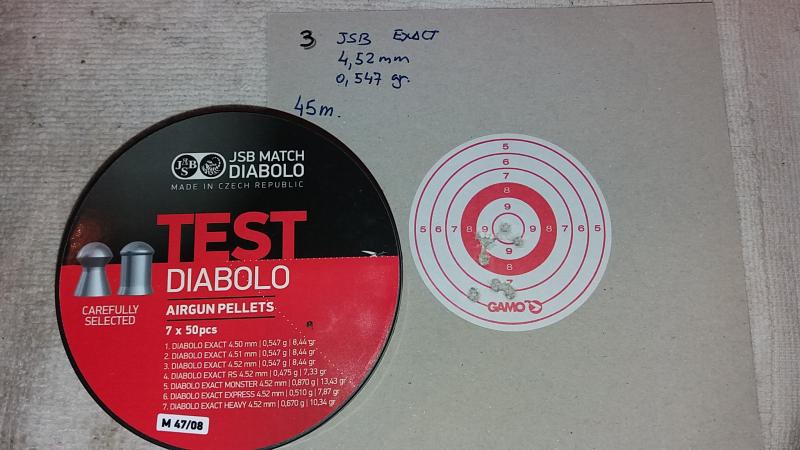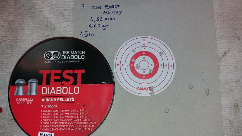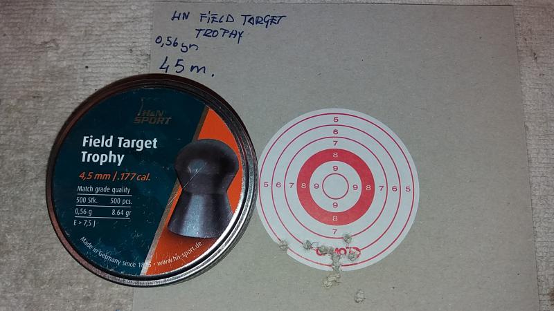 Pues si y no, todavia estoy haciendo pruebas porque el tiempo no acompaña y con viento no las hago porque me llevaria a errores. Dejo las pruebas que he hecho, a 45m y de momento van ganando los H&N y de todos los JSB que he probado tan solo unos podrían valerme a falta de repetir las pruebas de unos cuantos finalistas de los muchos que he probado.