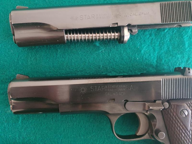 STAR MS CON LAS DOS CORREDERAS DEL 9MM Pb Y 45 ACP.