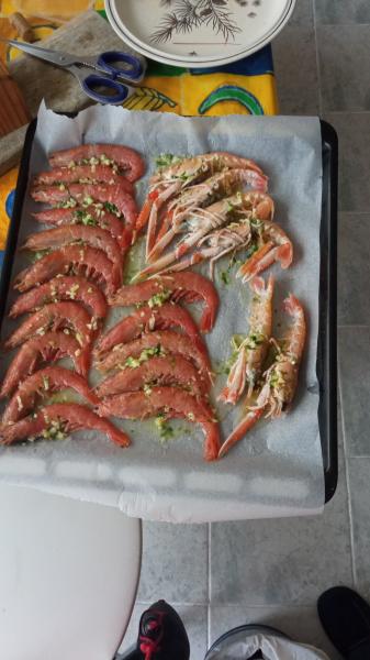 Primero han pasado por la barbería , luego he preparado un majao con aceite de oliva virgen extra , ajo , perejil fresco , una chorrada de vino blanco , sal y pimienta molida negra . 10 minutos de horno a 180 ⁰ previamente precalentado y no tiene más misterio.
