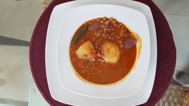 Lentejas vegetarianas, con un poco de aceite y vinagre.