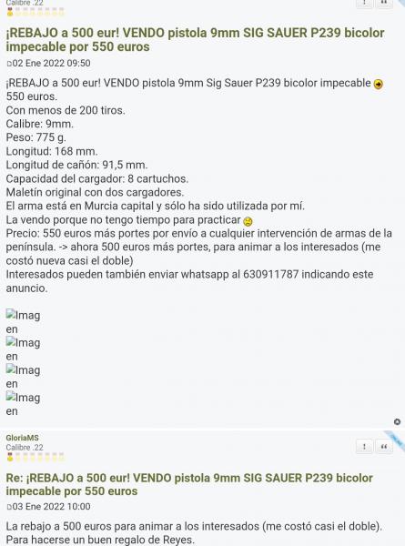 Re: ¡REBAJO a 500 eur! VENDO pistola 9mm SIG SAUER P239 bicolor impecable por 550 euros