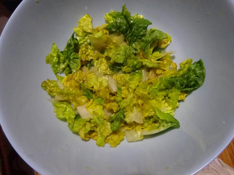 Ensalada de cogollos de lechuga de Tudela con AOVEX Hojiblanca y vinagre de sidra, rica y sencilla a mas no poder.