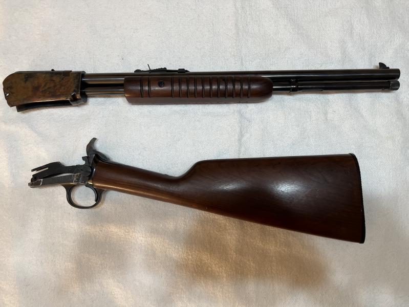 Marlin modelo 39 TDS, es la versión desmontable y con cañón corto. No se ven muchas y tiene fama de ser una de las mejores carabinas de palanca. DIspara tanto el 22LR como el 22 corto. Se encuentra en perfecto estado. Trae funda de transporte original para llevarla desmontada.
