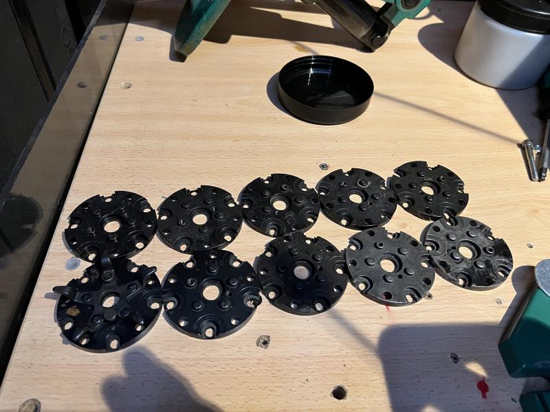 En venta prensa rcbs progresiva de 5 estaciones y 8 calibres distintos (shellplate).. 40sw, 45acp, 38sp, 32swL, 7,65, 44-40, 44sp y 303 britis.