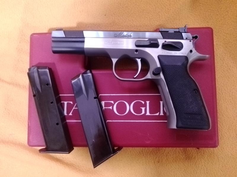 Vendo pistola Tanfoglio modelo P.19 Match. 9 m.m.p. 2 cargadores, disparador afinado por armero; cañón de 5 pulgadas, armazón y cañón de acero inox.; corredera pavonada. Tiene sus años, pero se ha usado muy poco ya que no tiro en 9 mm. Buena precisión, no se encasquilla nunca, guiada en F. Sin golpes ni rozaduras, casi como nueva. Vendo por exceso de cupo y no usar. Precio 400 €. José, Teléfono y WhatsApp: 616730269