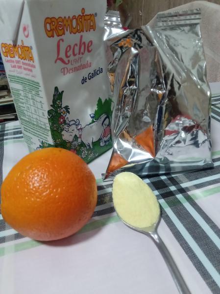 Tragese directo. Con sorbos de leche. Postre naranja y yogur.