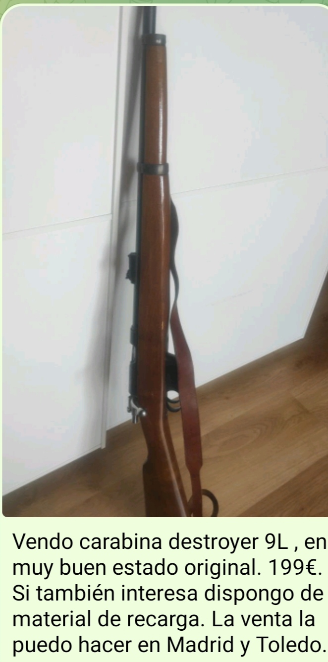 Jesús Jes escribió:Vendo carabina destroyer 9L, en muy buen estado original 199€. Si también interesa dispongo de material de recarga.