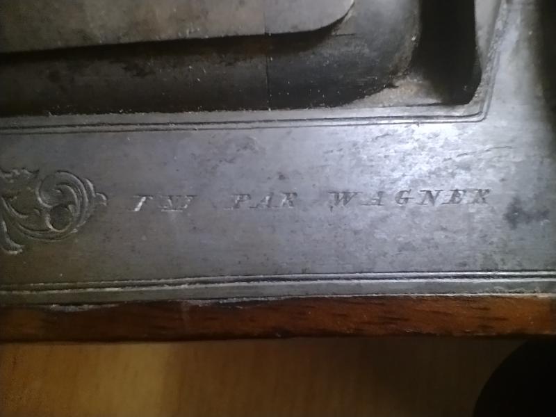 Tengo una escopeta herencia de un tío o tio abuelo de mi padre, por lo que calculo que tendrá unos 100 años. Entiendo que la utilizarían para cazar, pero no tengo confirmación de este punto. En la pletina izquierda lleva grabado "INI PAR WAGNER", pero buscando eso en google no encuentro nada relevante.