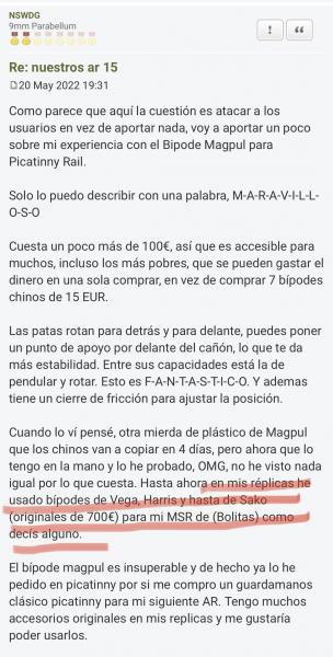 Creo que haces como en el parchís.....te comes 1 y te cuentas 20........ Lis Barrett de visión son como el Guadiana, lo de Rks plus cada X tiempo, lo de Martínez antes de llegar está vendido......y no solo Colt o LWRCI......,sabrás lo que han traído....... :lol: :lol: :lol: :lol: :lol: han traído de las mejores marcas de USA como LMT, FN, NOVESKE.........y las que no menciono o r no meter la pata ....... en fin lo único en stock a día de hoy los Haenel.......lo dicho lentejas lo tomas o lo dejas........ ahhhh !!!!! no era el mercado español cutre ????? de lo que citas cutre ni hay nada.......por sus actos lo conoceréis.......según dicen...... :saluting-soldier: