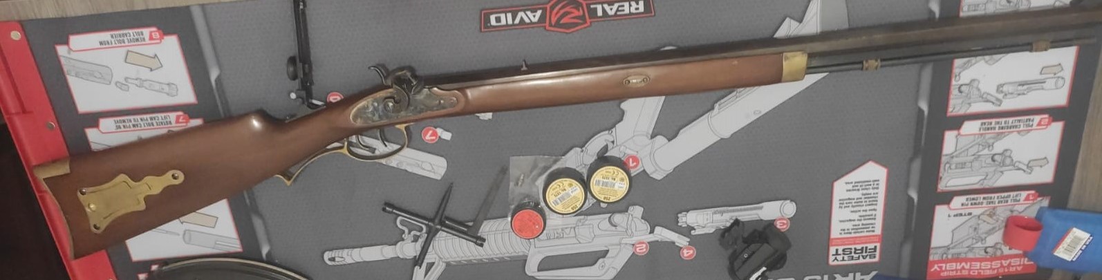 Esta en Valencia , tiene embudo, baqueta, llave , una chimenea de repuesto, 1 caja de pistones con mas de la mitad y 2 sin usar, casi una bolsa de bolas de 445 y algo mas si se recoge en mano.