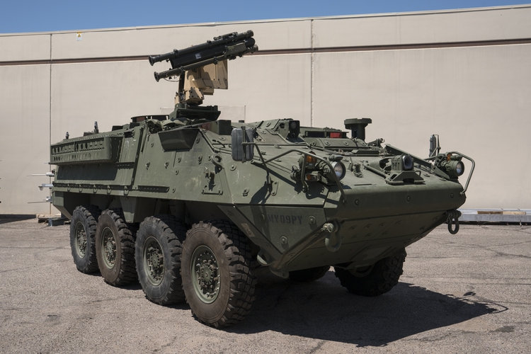 27.- M-1141 Stryker A1 IM-SHORAD, versión cuya única diferencia es el contenedor rectangular de los Stinger al ser más fino que los Hellfires.