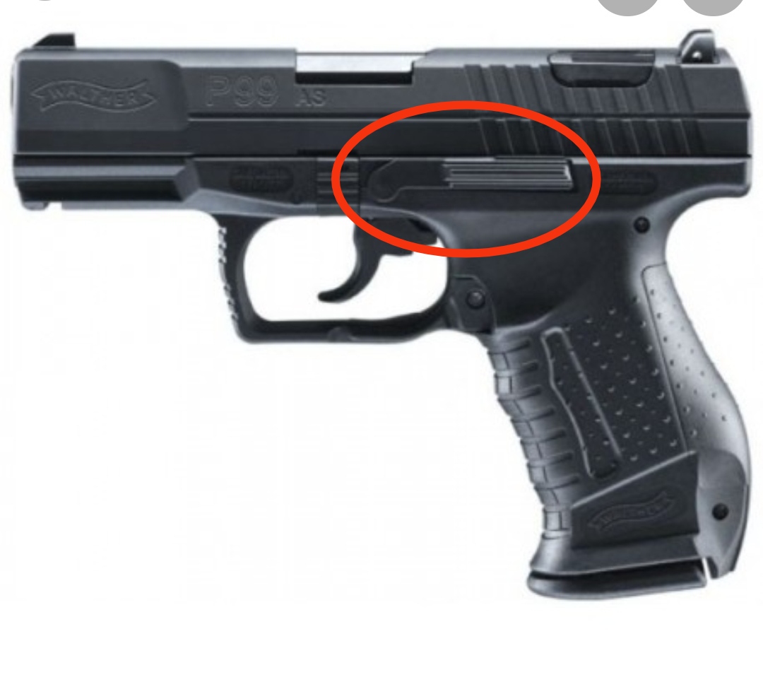 Vendería mi Walther P99 AS or 400€ la pestaña retenedora bascula en el mismo sitio pero no está completamente expuesta como en tu foto.
