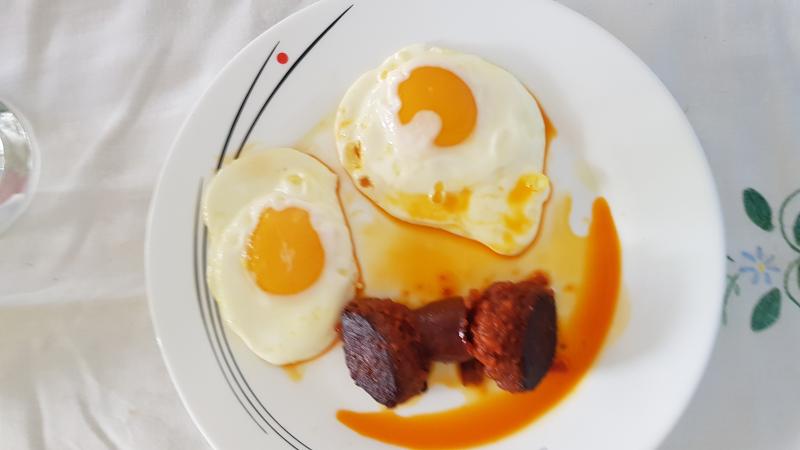 Huevos fritos de gallina de mi amigo Paco, que tiene el camping El Sur, nombrado mejor camping de España, acompañados de farinato de Salamanca .20220811_131223.jpg