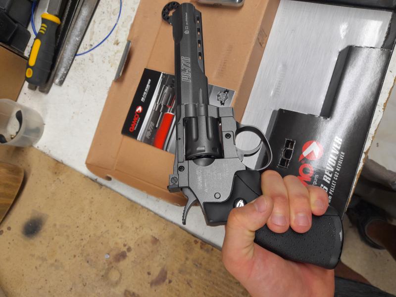 Hola, vendo este revolver Gamo modelo PR-776 calibre 4,5 de co2. Su estado es excelente, tanto de estética como de funcionamiento. Muy poco uso, ninguna fuga de gas, juntas en perfecto estado. Incluye dos cargadores y manual y caja originales. Pido por él 50€ mas portes. Un saludo.