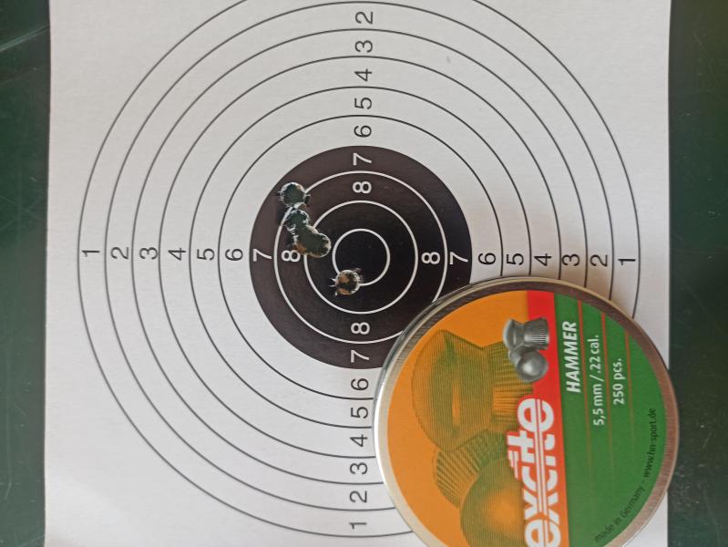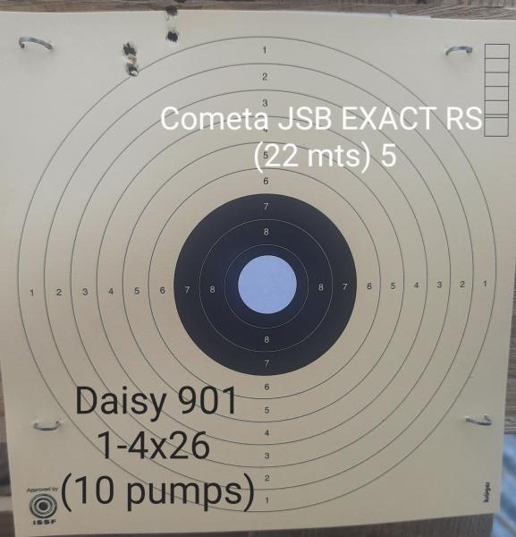 No tenía tiempo y quería probar la agrupación de esta Daisy si o si a esa distancia, así que salió lo que salió. Prometo centrar el visor y publicar las dianas.