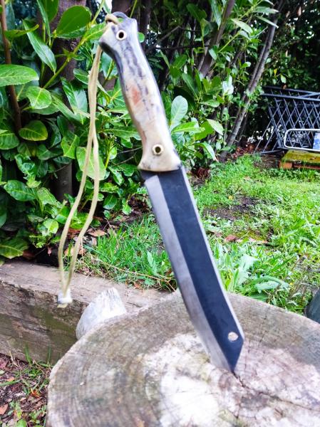 Se vende este cuchillo se la marca terava el modelo skrama pero con un magnífico mango en realizado en carnero cuchillo único 20 cm de hoja de acero 80crv2 120 envío incluido