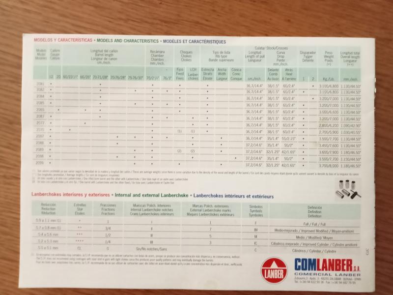 Tiene 71 cm de cañones , y 36'5 cm del gatillo al centro de la cantonera. Pesa unos 3'1 kg, adjunto fotos de su manual original Lanber .