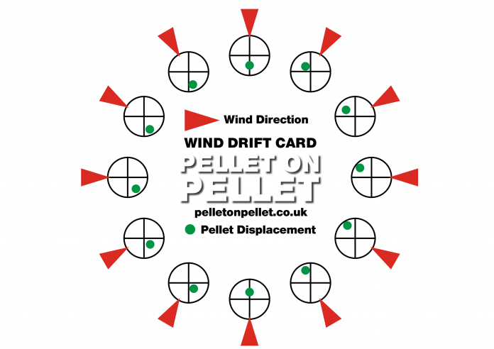 Y como te dicen, al añadir el efecto del viento, que empuja el balín en su dirección. Se desvia el POI (Punto de impacto) como se observa en las figuras anteriores que has puesto y han colocado