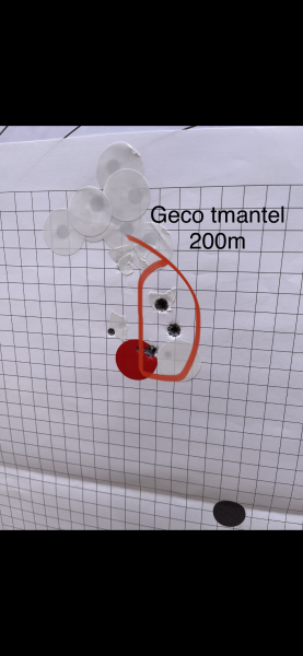 Dos tiros él y uno yo a escasos 80 mts apoyados en una piedra plana usando mochila. Blanco casero, un folio DinA 4 con una cruz pintada para poner la Cruz del visor en ella.Los tres cosidos uno al otro sin hacer cacahuetes, unos 4 CMS altos sin ninguna deriva, así que está perfecto, falló el indio.
