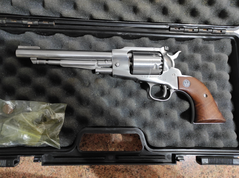 Ruger Old Army INOX .44 perfecto estado mecanico. La acción es perfecta y se siente como un arma nueva. Muy preciso con bola .457 y pólvora Santa Bárbara.