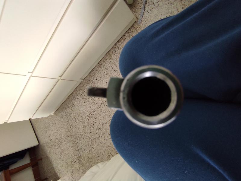 Este revólver es inox pero ha sufrido algo de corrosión en el cañón cerca de la boca y en la corona. Falleció el anterior propietario y quedó guardado en una funda de cuero con Intervención de la Guardia Civil. Esto no afecta la función del revólver ni su precisión.