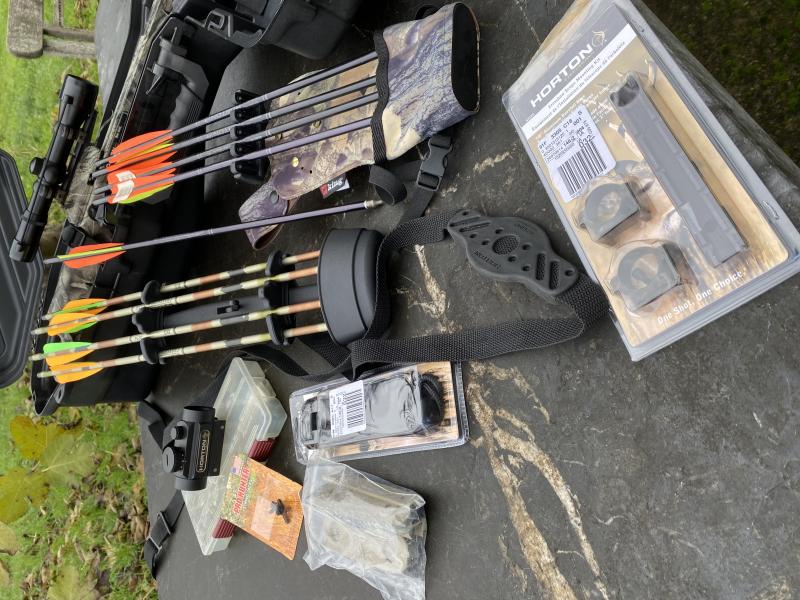 Se vende Ballesta Horton HD 175, con su maletín Plano, dos visores con su monturas; dos carcaj con sus juegos de flechas, dos montadores de ballesta, y resto de material que se observa en las fotos. Prácticamente sin uso, no se ha sacado al campo nunca.