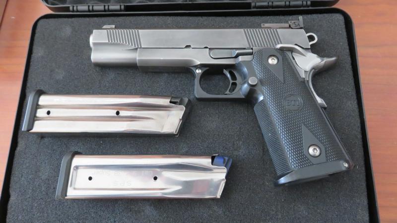 Por obligación vendo mi preciosa HPS/STI 2011 en calibre 9mm a tirado con munición recargada para precisión, su estado es muy bueno como se podrá ver en las fotos, su precisión es simplemente extraordinaria en buenas manos claro esta, el pavonado es original envejecido queda muy bien, viene con 2 cargadores el cañón y corredera fueron ajustados por un armero de renombre Alemán certificando una agrupación de 3" a 50 metros, el gatillo se cambio por uno de aluminio y ajustado a 1.100 kg, su precio son 1380€ mas portes si los ubiera.