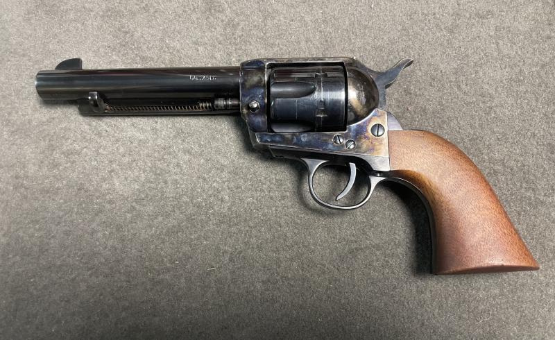 Pietta en 45lc cañon 5,5” Pavón negro y cachas de madera, guiado en AER, gatillo afinado, solo a tirado de manera informal