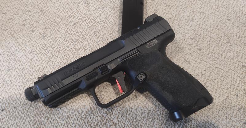 Vendo pistola canik tp9 elite combat con 4 cargadores, funda original. Sistema "Optic Ready" para colocación de visor con 4 bases incluidas, gatillo mejorado de aluminio con perfil plano Retenida de corredera ambidiestra, botón de retenida de cargador intercambiable diestro/zurdo, rail Picatinny delantero, lomo trasero intercambiable con diferentes dimensiones, indicador de cartucho en recámara, indicador de percutor armado. Apenas a tirado 1000 tiros en un año, unico propietario.