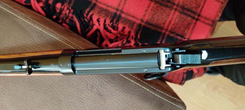 Hola. Vendo este winchester, tiene tornillos en la parte superior para colocar unas monturas, expulsa lateralmente, 16" de cañón, seguro en el armazón de tipo pasante, así como el de la palanca, hasta que no se aprieta con la mano totalmente no se puede disparar. Está en Asturias guiado con licencia "D" fabricado en America. 775€ gastos incluidos a la península. Un saludo para todos los foreros. Las manchas que se ven son del contraste del aceite y la luz