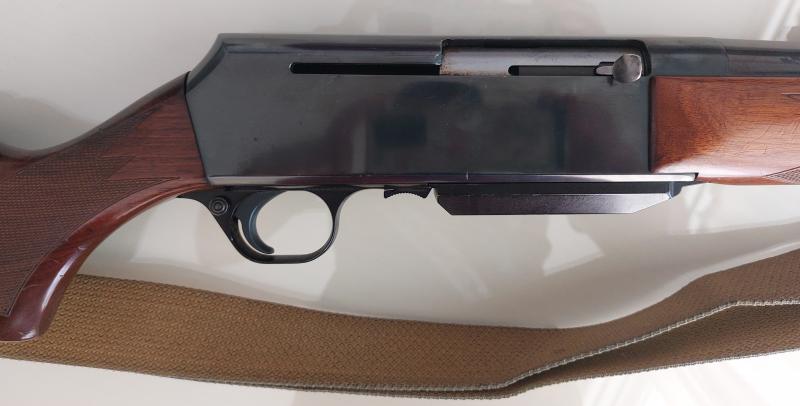 Rifle semiautomático marca Browning modelo BAR en calibe 300 Win. Magnum. Se entrega con funda, canana y dos cargadores. Está en buen estado.